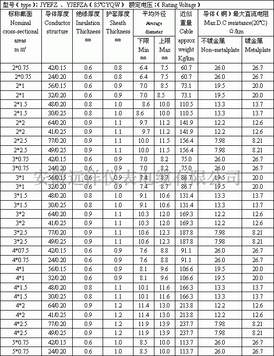 產范圍 Production range of cable